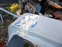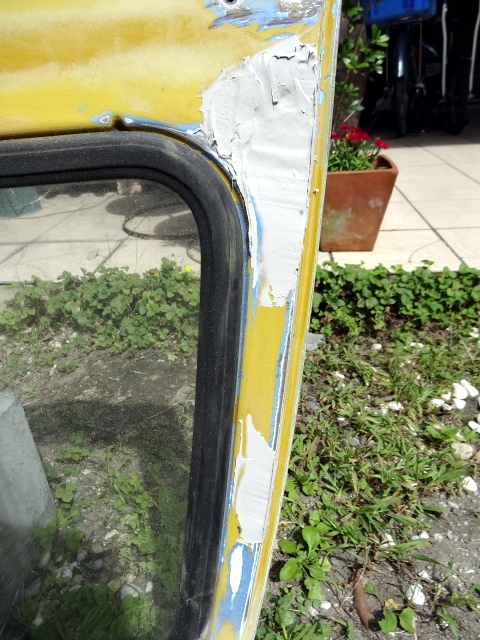 | 【12:12】パテ埋め前のセンターピラーとフロントウィンドー |