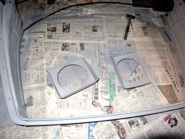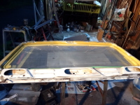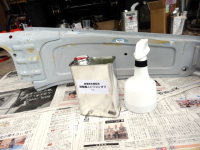 | 当初は、ボディ色にするつもりだったフロントウィンドーも、ロールバーと同色のガンメタにする事にしたので塗装準備。 |