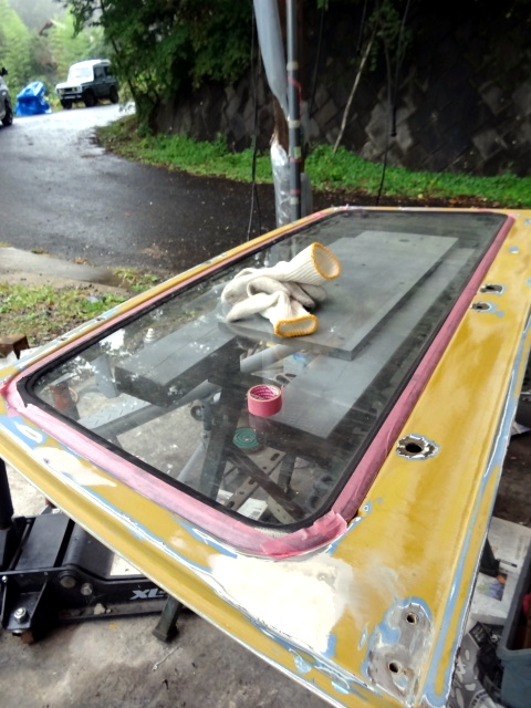 フロントウィンドーも、ロールバーと同色のガンメタにする事にしたので塗装準備等。 |