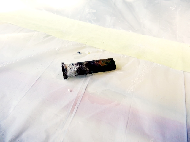 ダッシュボードに塗った、ダークグリーン(ビビッドイエローが20%、ブラックが80%)の残りにブラックを加えて