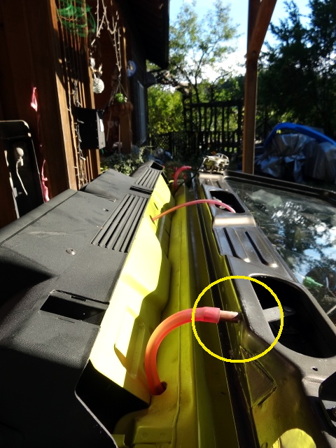 まずは、フロントウィンドーのドレーンパイプに、ホースを付けて窓を閉じてみる。