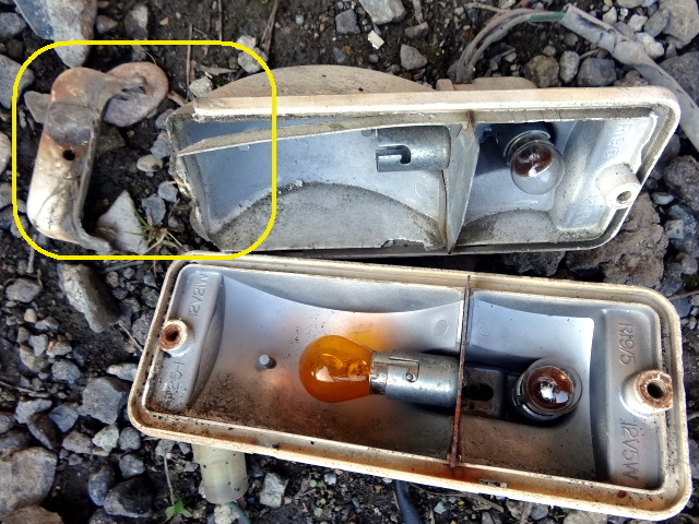 5号の黄色レンズはヒビがあり車検が?なので、3号の白レンズと黄色バルブを移植した。 |
