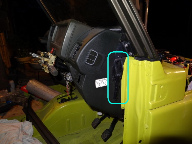 | 次は、忘れてたフロントウィンドー下側のパッキンの取付して、車内側のフロントウィンドー固定レバー取付 |