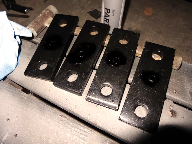 | 10/12(木)の作業は、リヤバンパーのステーにする穴開けしたUシャックル座金の塗装などを少しだけ |