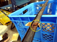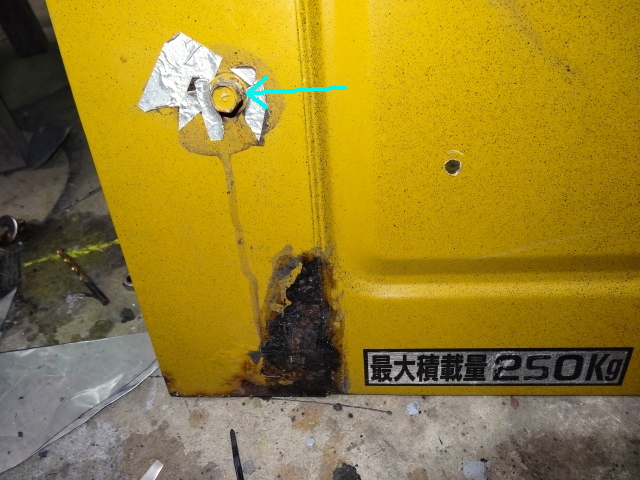 | スペアタイヤのステーを止めにくいので、フレームを少しカット |