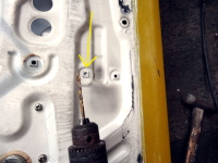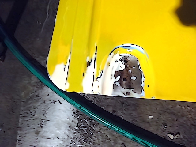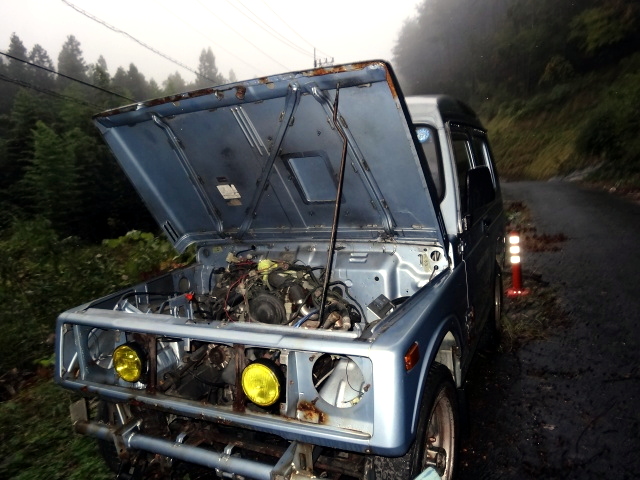 | 【10:08】先日、表側測ってボンネットのフックの穴開けしたら、裏からみたらずれてた件(笑) |