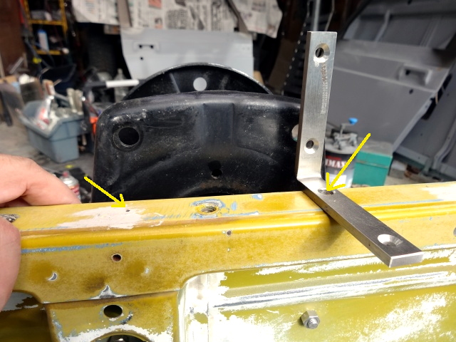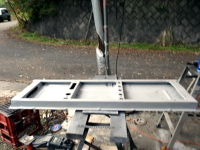 リヤゲートへの配線を検討し、配線用の穴位置決め、燃料ホースカバーのステーも位置合わせ。 |