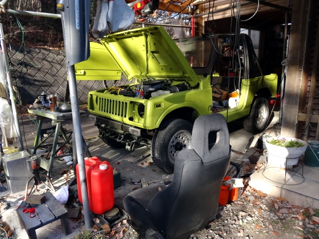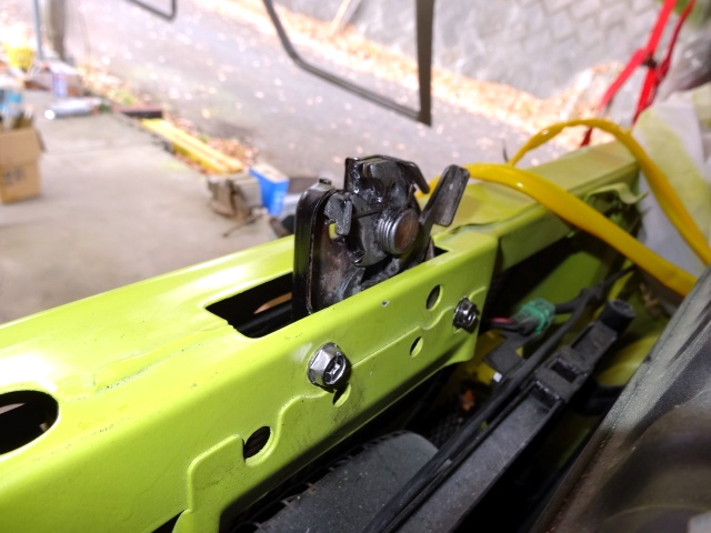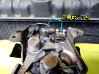 次は、ボンネットキャッチの取付。実は、分解時の画像を確認しないで適当に付けた結果......後日大変な事に |