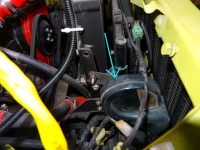 1つは、ラジエターのステーに直付け。もう一つは、L字アングルを加工して取付。 |