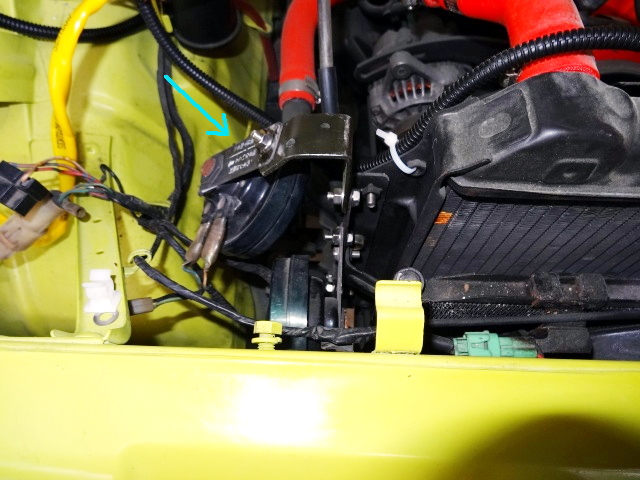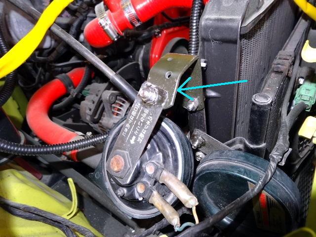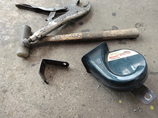 次は、ホーンの取付。これは5号に付いてた奴。変な位置に付いてたので、良い位置を探す。