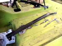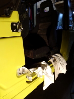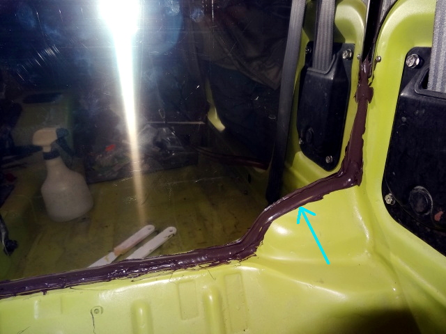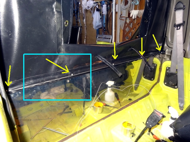 運転席側は、後日、通し忘れたルームランプ配線を通してから。 |