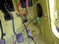 【15:16】パーキングブレーキの配線に、一応ブーツを被せてみた。