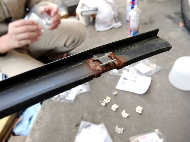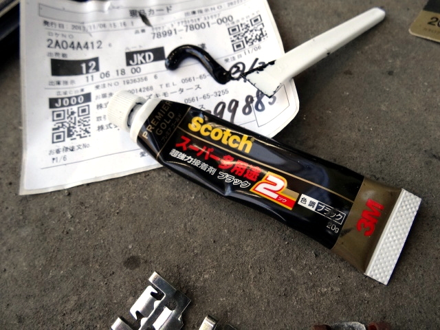 1人では付けられなくて、TAROに支えてもらって仮止め(笑) |