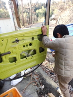 次は、やっとドアの内張りの取付。SMZのレザー仕様を奢った