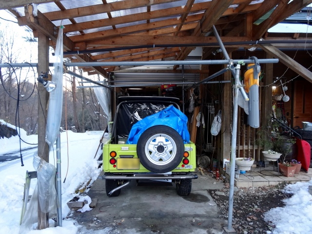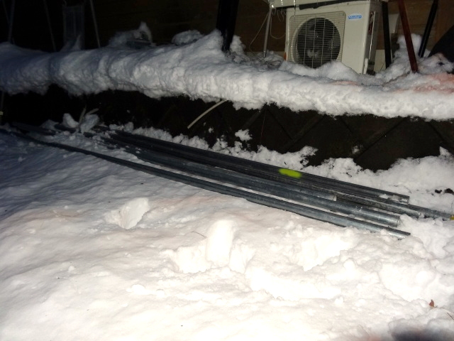 | 1/7 除雪機を置くのに不便なので、お役御免となった、単管足場の撤去。 |