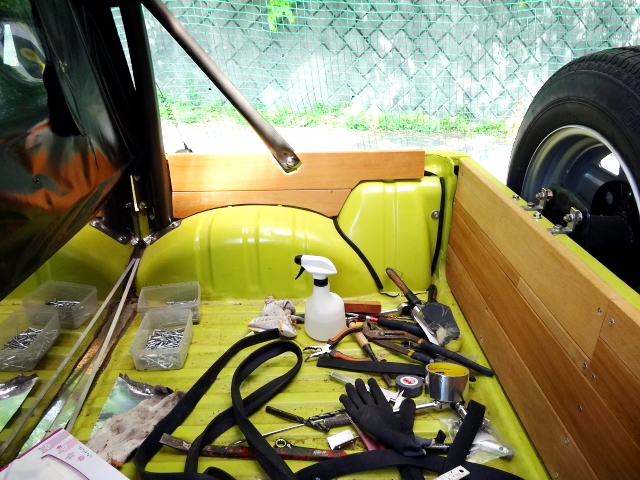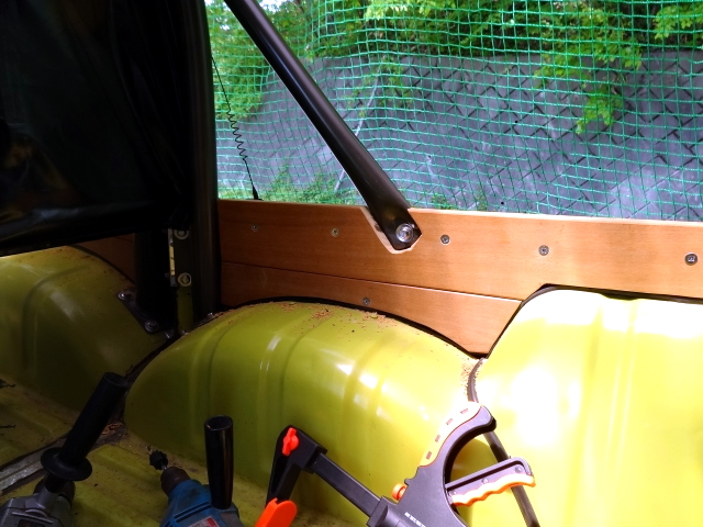 荷台は露天なので水抜き穴が必要。純正の大きい穴は、下に部材があって、そこが錆びてしまいそうなので、