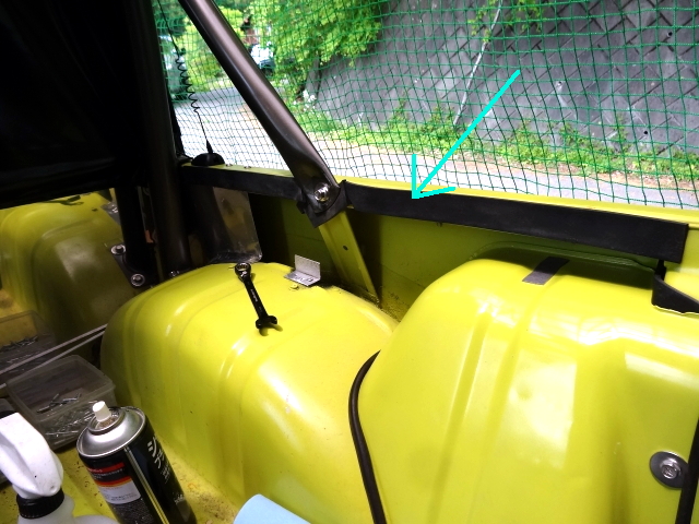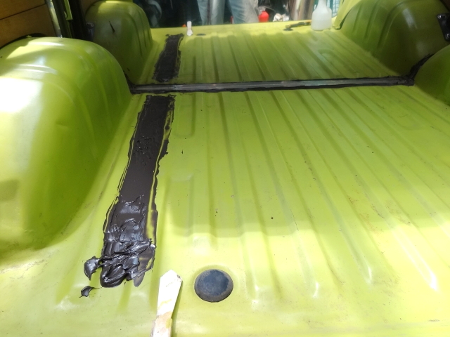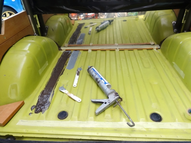 板で隠れる波の凹んだ部分にゴミが溜まって錆びるはずなので、コーキングで埋めてしまうことにした。 |