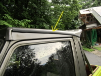 | 7/7(土) 再生で、幌からFRPトップに換えたんだが、雨天に乗り込む際に、ドア上からの雨だれが、幌の時より酷くて、結構濡れる 当初は、アルミで製作しようかと思っていたんだが、Amazonで見つけたP型のweather stripが使えそうなので購入。本日取り付け。 |