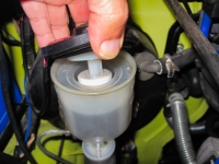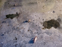触った感じは、エンジンオイルでは無い。さらさらしてるので、まずはブレーキオイルあたりから。 |