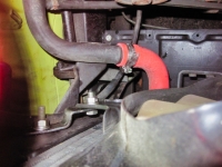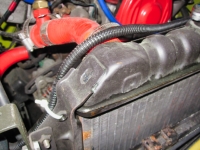 で、アッパーホースとラジエターの間から漏れてるっぽいのを発見。