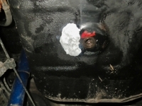埋め終わったと思ったが、燃タンのドレーンボルトを仮締めしてみたら新たな穴発見 |