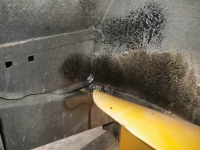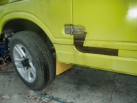 タイヤハウス内側の錆対応が目途がついてきたところで、せっかくなので、ボディ外側の錆の酷いとこも少し対応することにした。 |