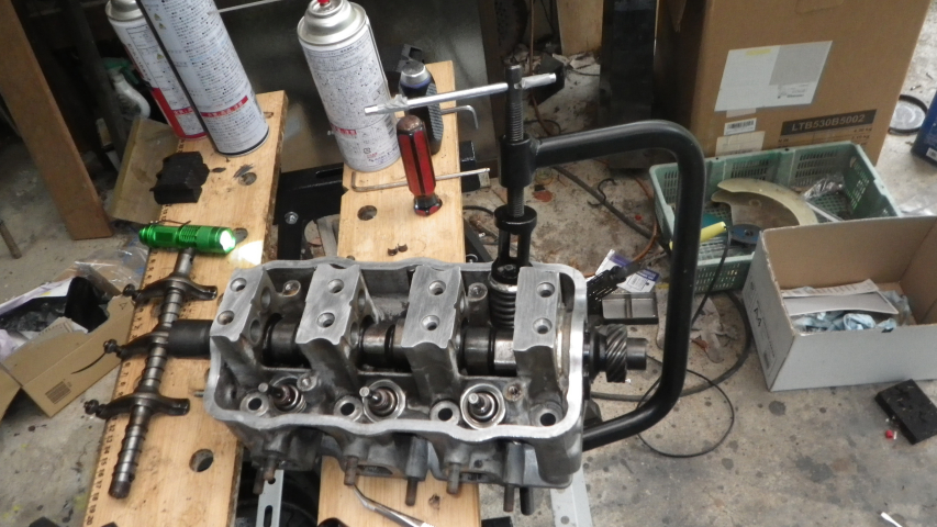 バルブスプリングを押さえてるストッパー?が収まっていなくて押さえてるだけなので、ぐらぐらする