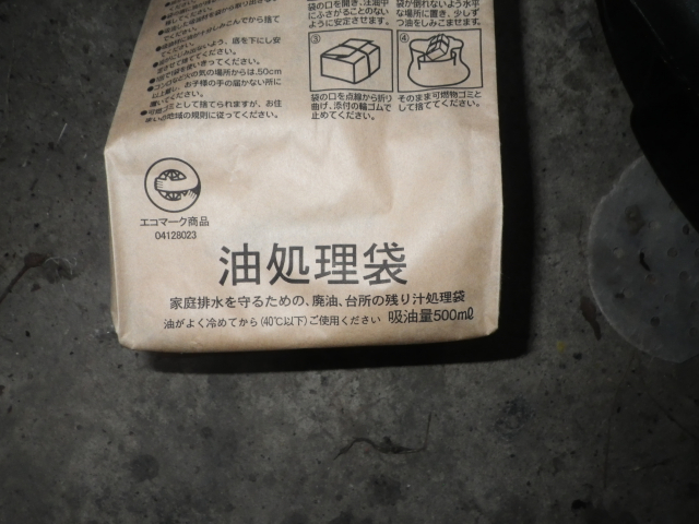 【16:29】抜いたオイルは、500ccの処理袋で足りてしまった |