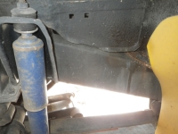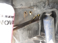 | 先日塗装した、エンジンルーム右側下方の下側も腐食してたので、さび落としして塗装 |