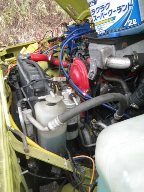 2/16 ジムニーのウォッシャー液補充する時に、LLCのリザーブタンクがほぼ空なのに気付いて補充