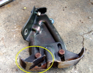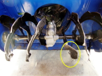 抜いた「間に合わせボルト」 ここに買った純正シャーピン使う