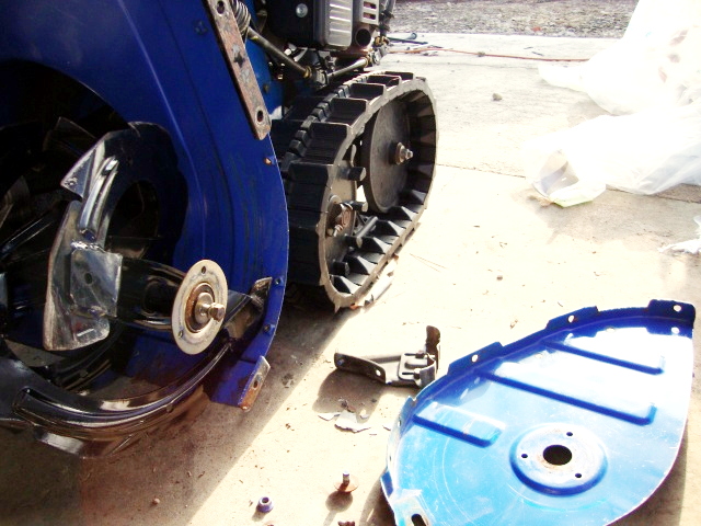 本日は、クローラー駆動輪のシャーピンを交換するつもりだったんだけど、左側のオーガの刃が、大きく曲がってるのを発見したので、