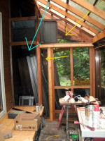 2012/ 7/21(土):木工作業場 北側ドア取り付け作業 day2