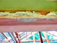 外側の、余分に開けてあいまった穴、室内側の天井板、側板の壁面に、ウレタンフォームを注入する。