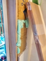 2019/8/18:ドア通路天井面の板の取り付け隙間にウレタンフォームを注入