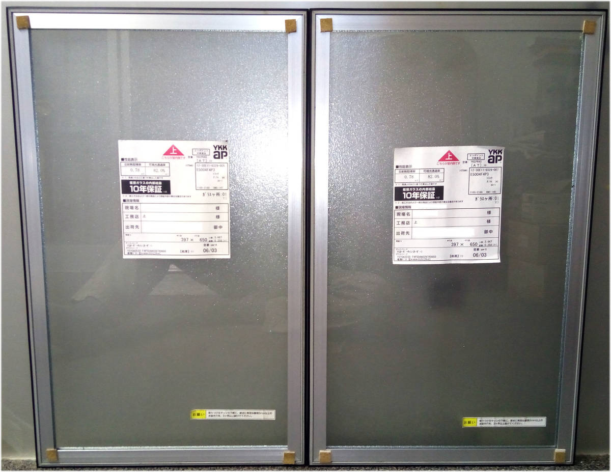 YKK ap 断熱遮音複層ガラス 397×650×11mm 2枚 未使用品です。