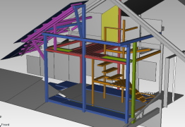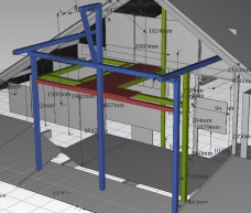 Step2:階段小屋の西窓枠柱〜3F床の桁組み 西側 東側 |