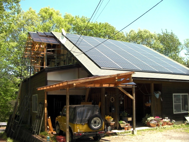 | 一応、仮だけど屋根を張り終えたので、本日より階段小屋の床〜階段の工事に着手。 |