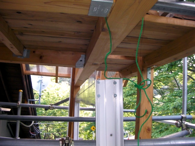 既存の屋根の切断した垂木を60x45の垂木で受ける。