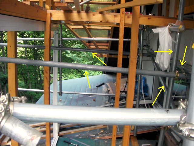 次は、次工程で邪魔になる足場と、強度的に間引いても良い足場の撤去。