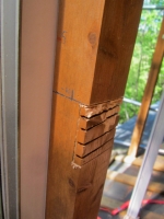 5/7(木) 階段部屋の北側の階段支柱の桁の取付け、次の支柱の材の準備