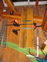 2020/5/25,26:階段部屋の下側の3〜4段目の階段板加工、上から2〜3段目の階段板仮置き