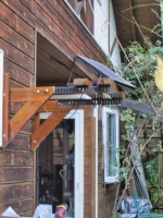 金具は、元々屋根裏南窓脇に設置するために切りだして塗装済のアングル材。
