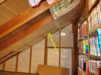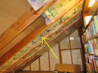 8/13:屋根裏部屋の残りの床板を張り終え、残ってる断熱材分の東屋根の天井張り