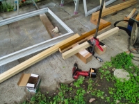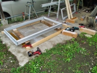 6/15:北面3Fに付ける「中」のアルミサッシ枠の木枠の組み立て〜取付
