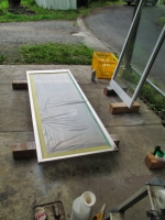 先日発掘して洗浄した大きいサッシ戸窓x4枚と
