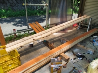 【16:56】古材は、結構反ってるので矯正しながら