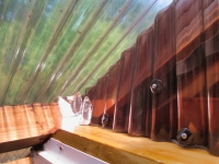 2023/7/30:ポリカ波板で空間埋めの続き、足場の単管を少し解体して、階段部屋2Fの床張り