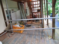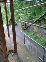 家の南東の崩壊したモッコウバラのパーゴラを支えるのい単管が必要なので、足場の解体。 |