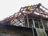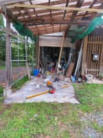 9/19 サッシ枠上下を、ジャッキで拡げるため、適当な(1.5m)の単管を物色